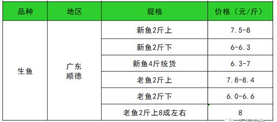 7月6日广东地区生鱼塘头价