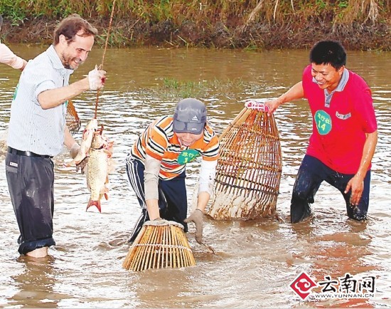 昨天,由云南勐海县团委和文体局联合举办的千人捕鱼大赛在边境小镇勐遮开赛,不仅当地群众和国内游客踊跃参加,就连老外也玩得不亦乐乎。